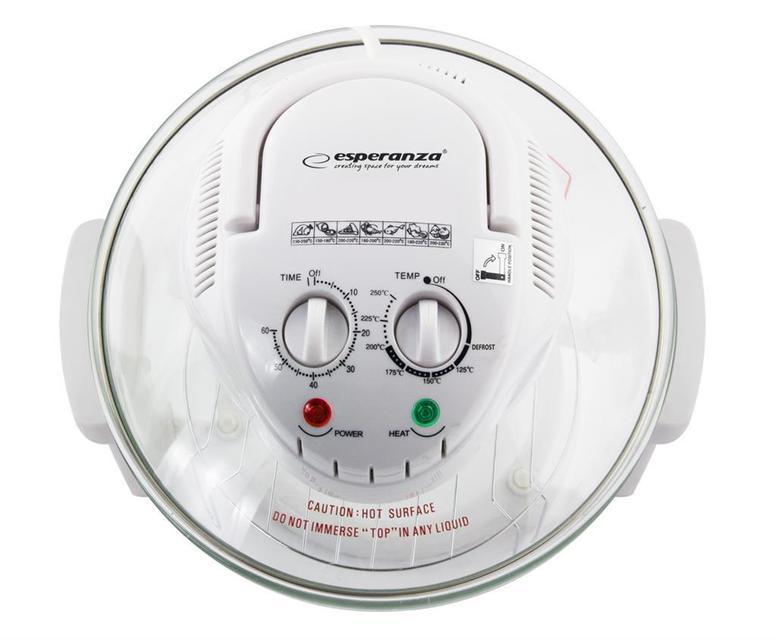 Аэрогриль Esperanza — это бытовой электроприбор, предназначенный для приготовления пищи с помощью потоков горячего воздуха. Представляет собой стеклянную чашу, которая имеет подставку и накрывается сверху крышкой.