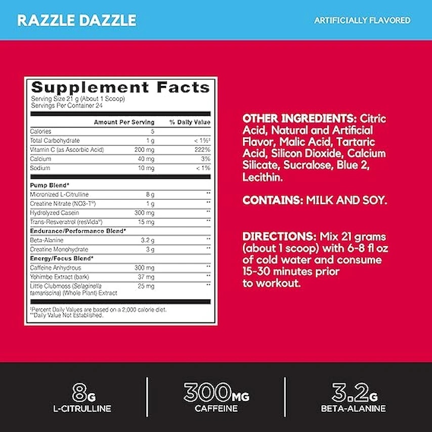 Смешайте 21 г (примерно 1 мерную ложку) с 180–240 мл холодной воды и выпейте за 15–30 минут до тренировки.