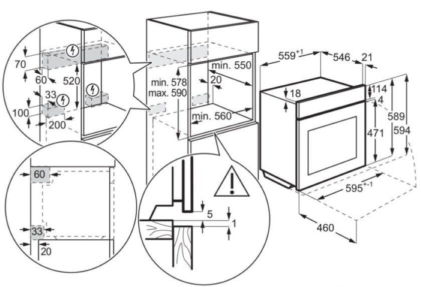 Размеры ниши для встраивания (ВхШхГ)59x56x55 см
