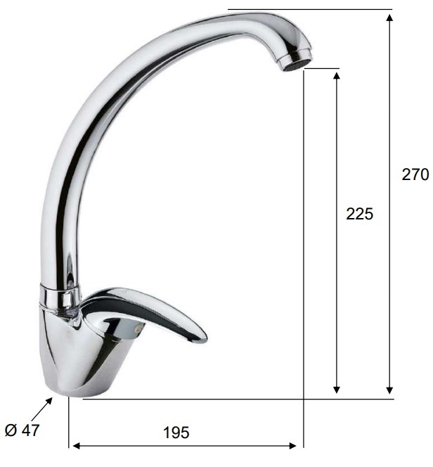 Высота излива225 мм