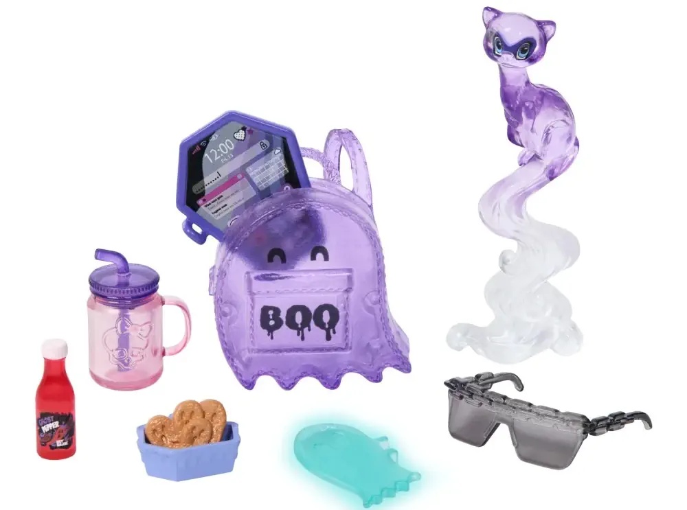 - Кукла Monster High Spectra Vondergeist — воплощение призрачной грации в ее фиолетовом обличье! Она поставляется со множеством тематических деталей, чтобы поощрять жуткие истории и веселье в создании стиля.