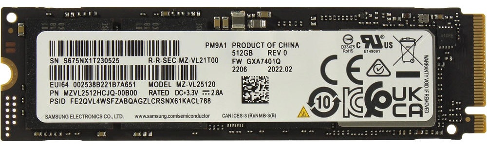 SSD накопитель Samsung PM9A1 512Gb (MZVL2512HCJQ-00B00)