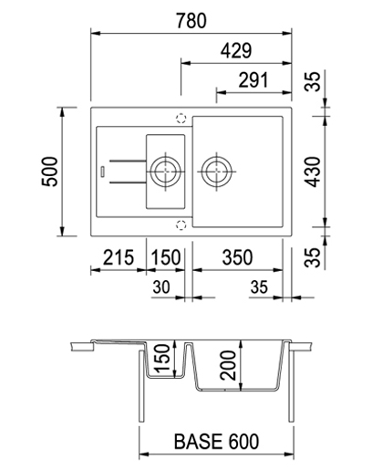 Размер мойки780x500 мм