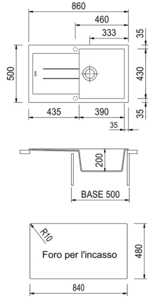 Размер мойки860x500 мм