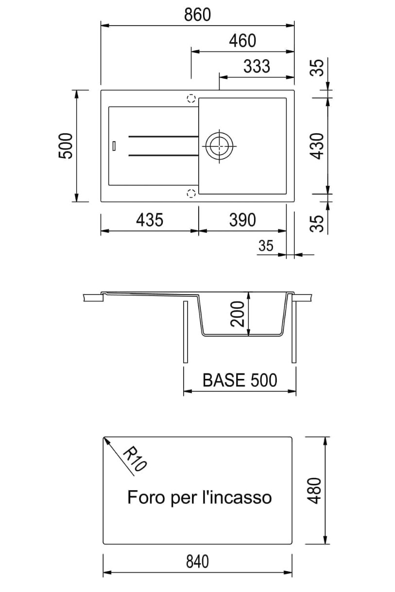 Размер мойки860x500 мм