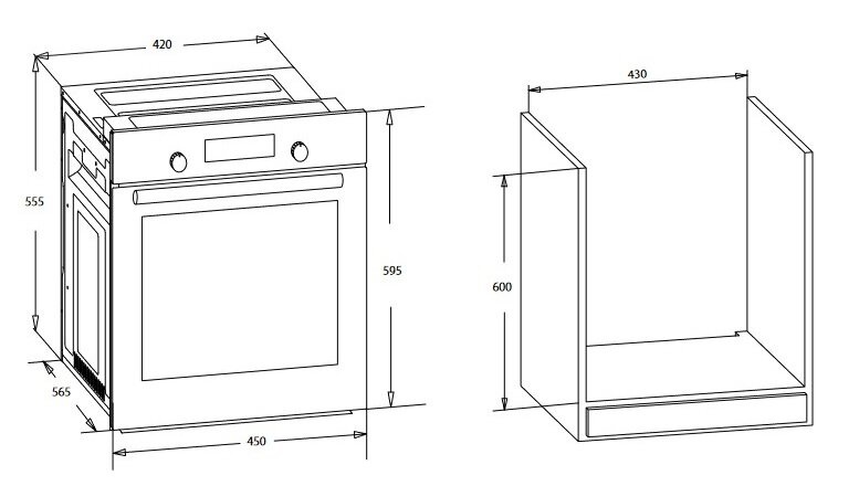 Размеры ниши для встраивания (ВхШхГ)60x43x56 см