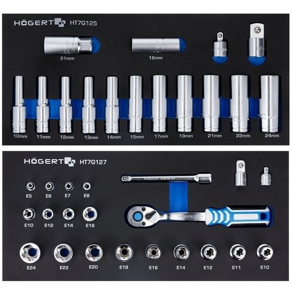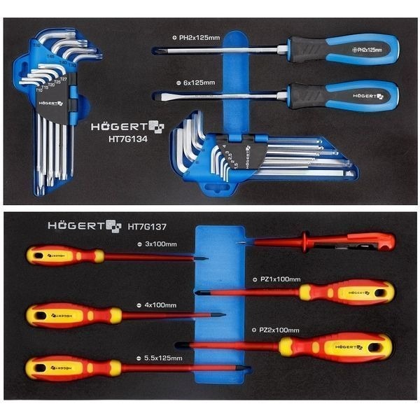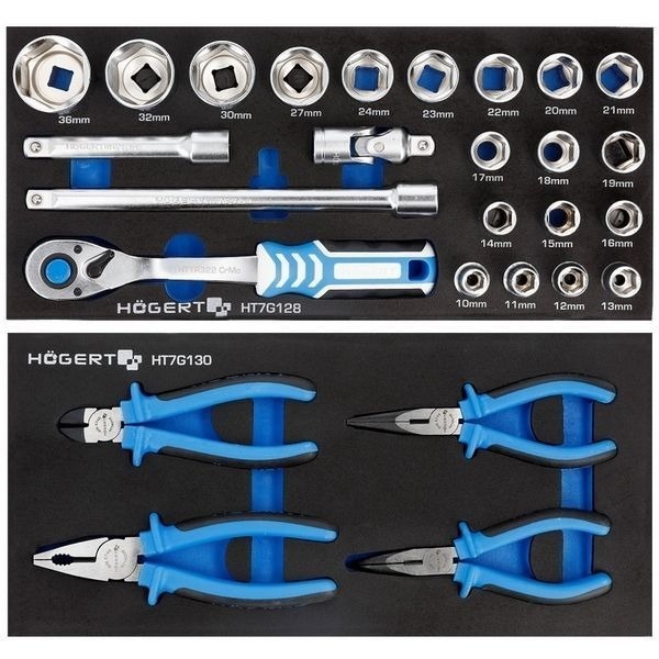 Оснащена 6 выдвижными ящиками на шариковых направляющих с комплектом из 171 высококачественных инструментов внутри. Ящики обеспечивают плавное открывание и надежную работу даже при ежедневной эксплуатации. Прочная конструкция и усиленный верх из АБС-пластика гарантируют долговечность и устойчивость.