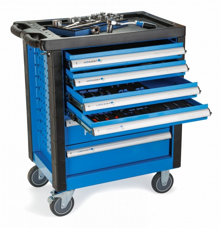 Инструментальная тележка HOEGERT HT7G052 — практичное решение для удобного хранения и транспортировки инструмента в мастерской, автосервисе или гараже.