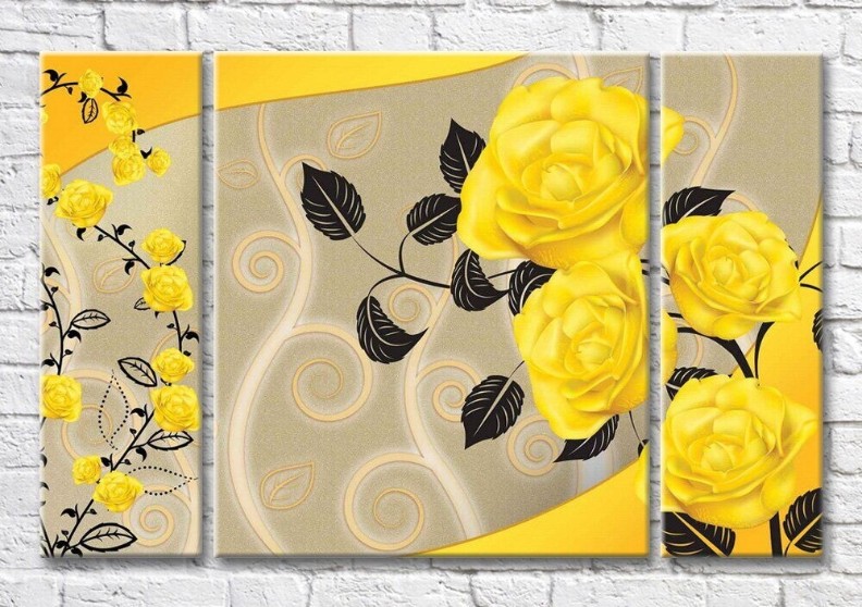 Картина Magic Color Branches of Yellow roses on a Beige background (3565152)