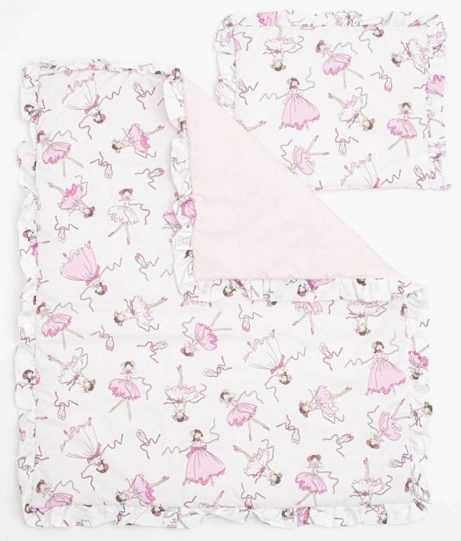 Красивый хлопковый комплект для коляски New Baby Ballerina Bella. В комплект входят подушка и пододеяльник с оборкой и принтом сказочной танцующей балерины. Все наполнено противоаллергическим волокном. Комплект изготовлен из высококачественного хлопка. Хлопковый комплект роскошно и нежно ласкает и согревает кожу вашего малыша.