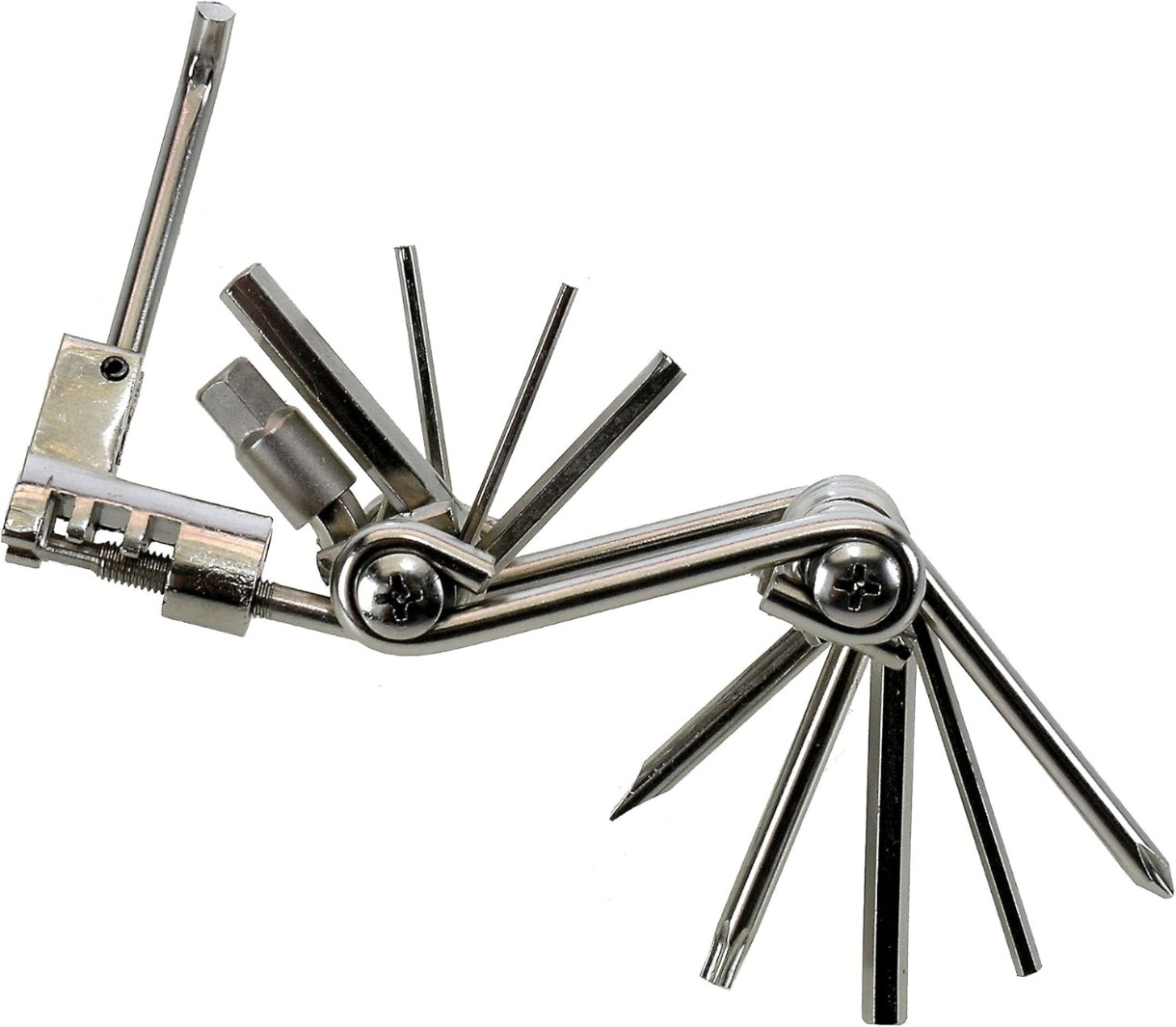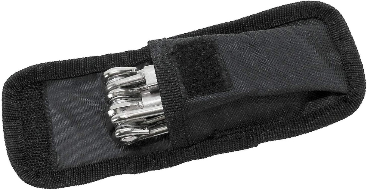 Многофункциональный складной инструмент Ventura Mini Folding Tool — это компактный и лёгкий набор, объединяющий 11 функций, необходимых каждому велосипедисту для быстрого ремонта и обслуживания в дороге. В комплект входят стальные шестигранники размеров 2, 2.5, 3, 4, 5, 6 и 8 мм, плоская и крестовая отвертки, инструмент для клёпки цепи и ключ Torx T25. Все элементы аккуратно складываются в компактный корпус, а в комплекте идёт удобный нейлоновый чехол для транспортировки. С весом всего 193 г набор легко брать с собой в поездку, оставляя руки свободными и обеспечивая готовность к любым мелким неполадкам на маршруте.