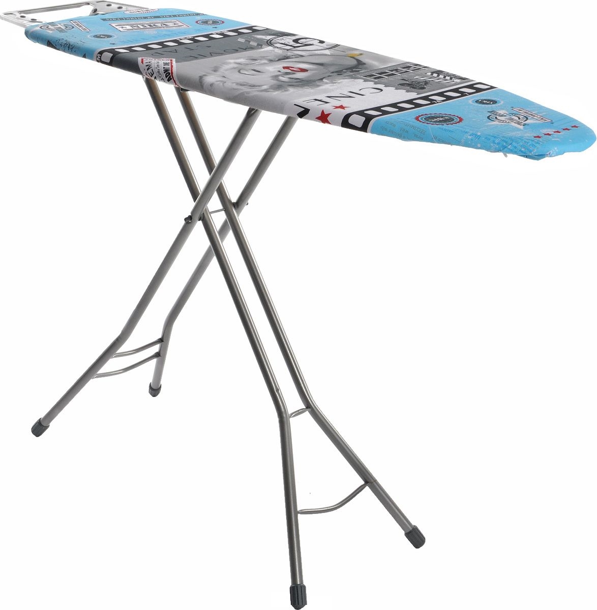 Поверхность позволит вам без труда гладить не только рубашки, мужские брюки, но и постельное белье. Прочные стальные окрашенные ножки снабжены пластиковыми вставками, которые предотвращают скольжение, что создает удобные условия для глажки, а также препятствуют образованию царапин на полу. Также изделие оснащено подставкой для утюга. Доска легко складывается и не занимает много места в сложенном состоянии.