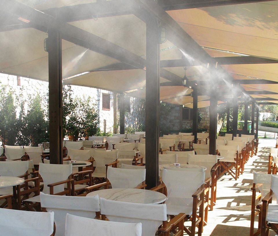 Системы тумана низкого давления создают тяжелые частицы воды большого размера, которые попадают на поверхности и людей, не успевая испариться. В противовес — наши системы создают мельчайшие частицы, которые мгновенно испаряются и охлаждают максимально эффективно. Кроме того они не делают поверхности и людей мокрыми.