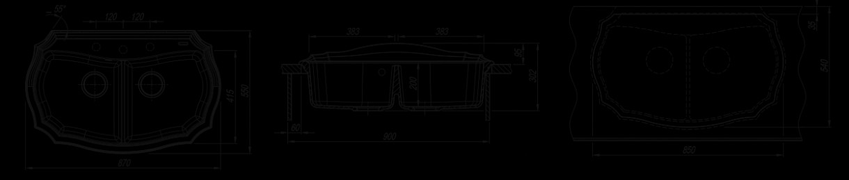 Мойка устанавливается задним бортом вплотную к кухонному фартуку/стене.