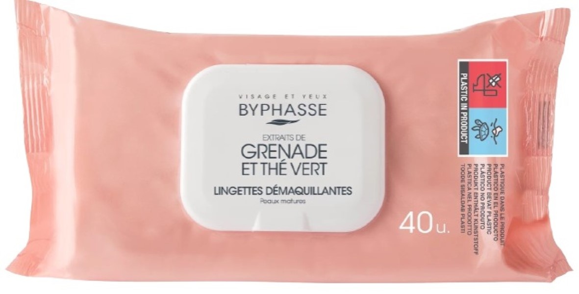 Салфетки для снятия макияжа Byphasse Make-Up Remover Wipes Pomegranate & Green Tea 40pcs