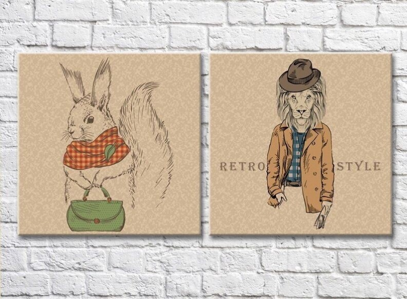 Картина ArtPoster Squirrel with a Green handbag and a lion in a jacket (3447712)