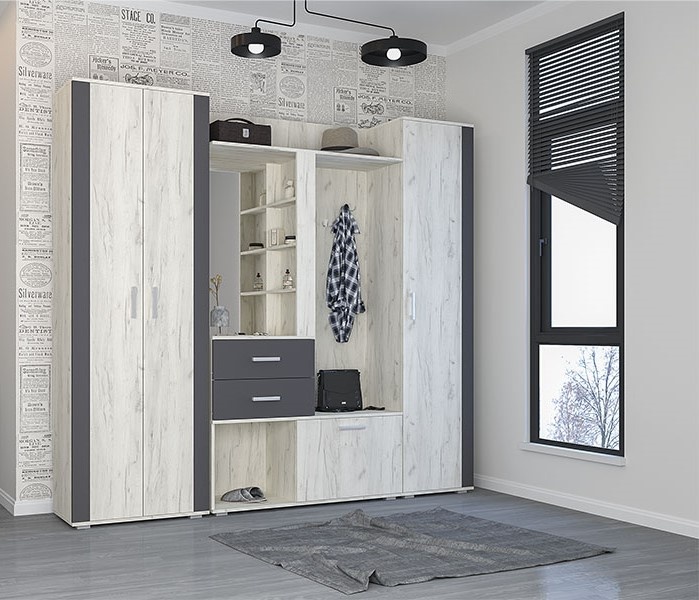 Шкаф Yasen Марсель 2Д Дуб Крафт Белый/Серый Графит