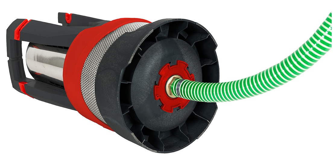 Благодаря мощному двигателю в 1000 Вт, 3-ступенчатому нагнетательному механизму достигается скорость потока до 6500 л/ч, а перекачивание воды выполняется в кратчайшие сроки. Он рассчитан на глубину погружения до 7 м и высотой подачи до 34 м. Максимальный диаметр загрязняющих частиц может составлять 0,5 мм. К выпускному отверстию насоса подсоединяется шланг диаметром 1,5 дюйма (47,8 мм). Подсоединение фланца для откачивания чистой воды из верхней части цистерны можно выполнить без специальных инструментов. Насос используется в положении лежа. Ручки специальной формы не дают насосу перекатываться.