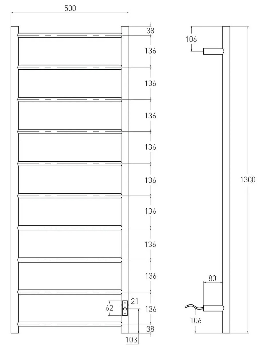 Характеристики Полотенцесушитель VOLLE Aqua Ronda (9235.000204)