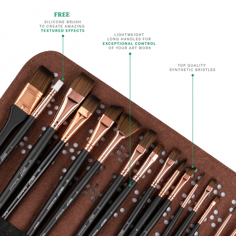 Мы представляем вам набор из 15 профессиональных кистей, а в качестве БОНУСА вы получите полное руководство по использованию и очистке + еще 1 силиконовая кисть, специально разработанная для создания потрясающих текстурных и рельефных эффектов.