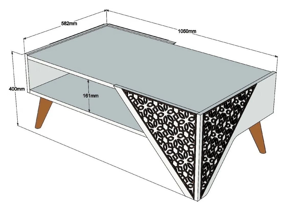 Созданный с высокой точностью и вниманием к деталям, журнальный столик изготовлен из древесно-стружечных плит, покрытых 100% меламином, что обеспечивает прочность и долговечность. Толщина 18 мм и рельеф CNC 4 мм добавляют утончённости, делая столик деталью, способной впечатлить гостей.