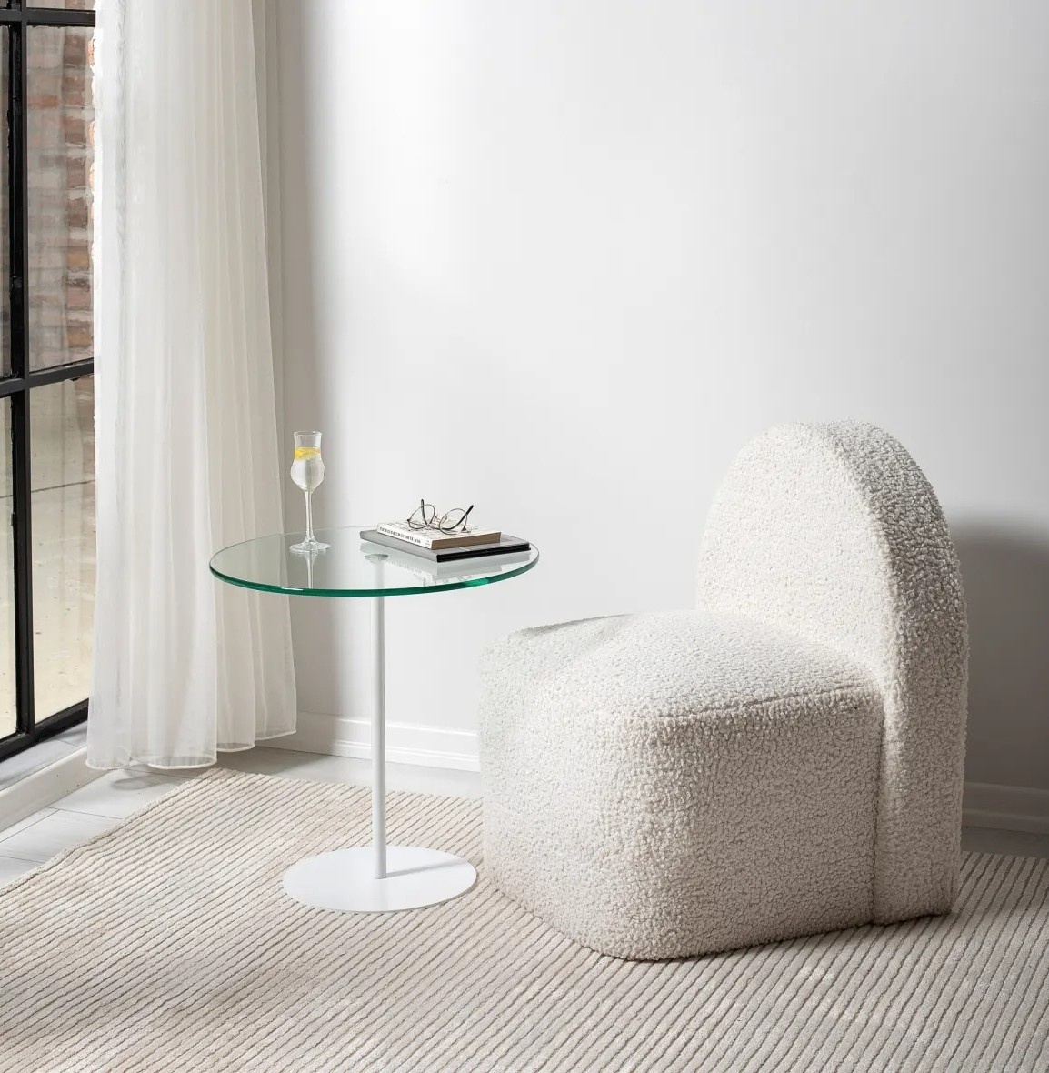 Компактные размеры — 50 см в ширину, высоту и глубину — делают столик отличным выбором для небольших пространств. Он подойдёт как поверхность для книги, чашки кофе или размещения декоративных предметов, сочетая практичность и элегантность.