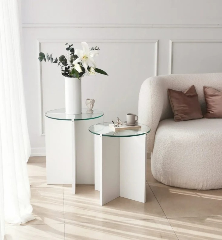 Столики изготовлены с использованием закаленного стекла, устойчивого к царапинам и высоким температурам. Каркас выполнен из плит с меламиновым покрытием, что обеспечивает стабильность и долговечность на долгие годы.