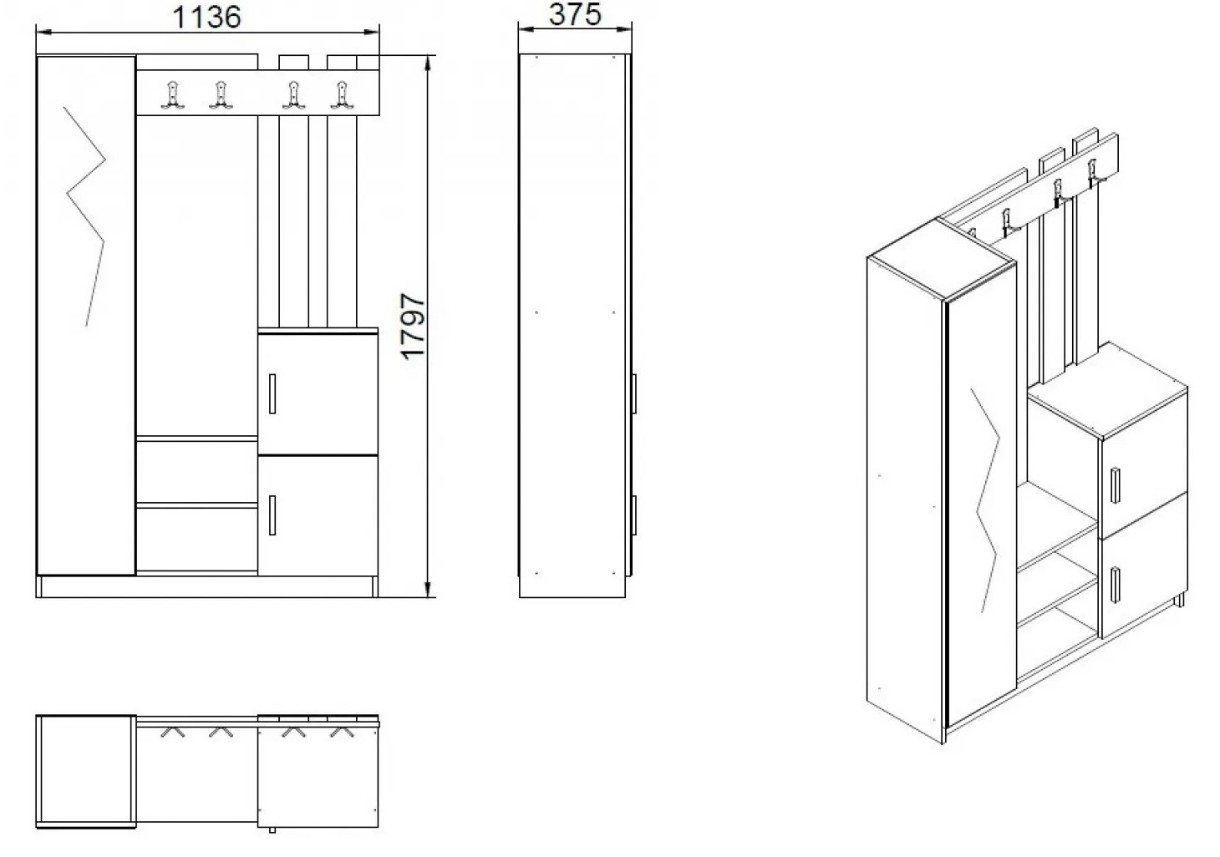 Прихожая Trendy DD7-W White 113.6x180x35cm GTR001389