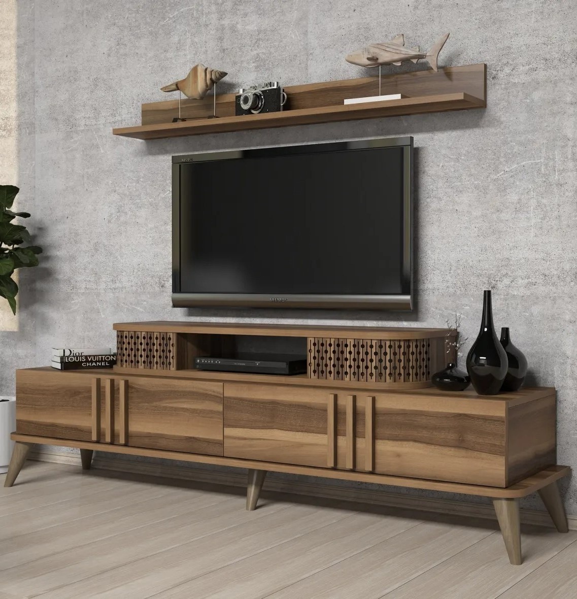 Эта TV-тумба легко сочетается с различными стилями интерьера — от современного до традиционного. Она может стать выразительным акцентом в комнате, подчёркивая декор и создавая тёплую и уютную атмосферу.