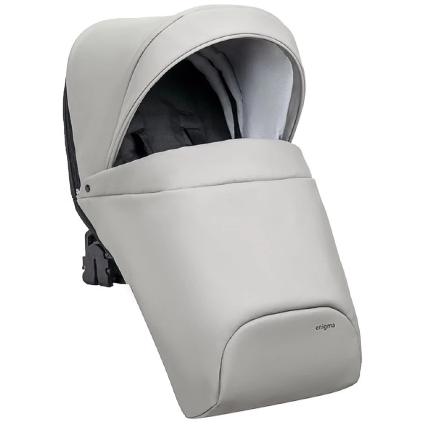 Просторная люлька, оснащенная механизмами складывания. Нижняя часть люльки изготовлена из прочного пластика, а верх обшит эко-кожей. Инновационным решением в люльке является дополнительное вентиляционное окно с москитной сеткой. Люлька комплектуется внутренним утепленным вкладышем и удобным матрасом с защитным бортиком со стороны головы малыша.