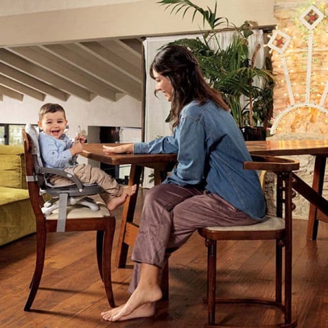 Стульчик для кормления Cam Smarty деально подходит в качестве переносного сиденья с подносом для малышей, а также как стул без подноса для детей более старшего возраста, которые хотят сидеть за одним столом с родителями.