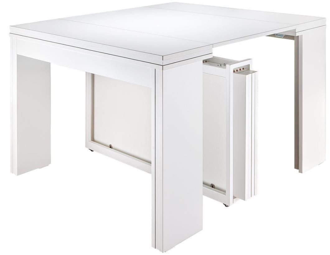 Стол трансформер может вмещать от 1 до 12 человек и имеет 56 различных комбинаций столешницы: мах 325 см, 270см, 215см, 160см, 105см, мин 50см. Высота стола 74см, ширина стола 95см. Отсек для хранения 5 дополнительных столешниц, является дополнительной опорной ногой, которая увеличивает надежность стола, а также экономит ваше место, позволяя хранить столешницы внутри стола. Количество комфортный сидячих мест: от 1 до 12 Поворотная ножка: из металла. Порошковая, полимерная покраска. на колёсиках. Система фиксации: между каждыми столешницами. Система фиксации при перевозки: да. Вес стола с пятью столешницами: 91 кг. Вес пяти столешниц: 31,2 kg. Вес стола без столешниц: 59,8 kg.