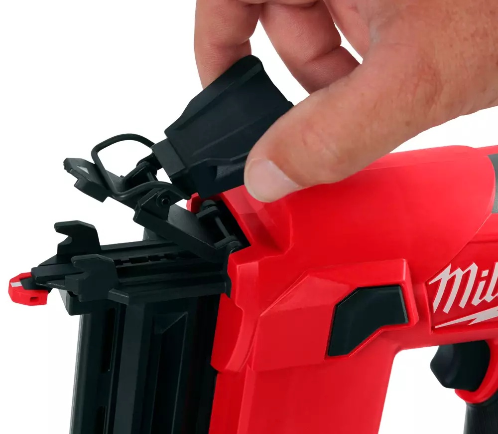 - Блокировка Dry-Fire останавливает стрельбу инструментом, когда в магазине не осталось гвоздей.