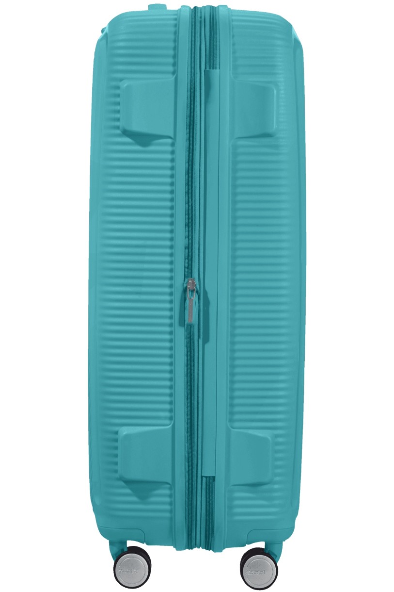 Ультрамодный, навеянный мировым ритмом, дизайн чемодана American Tourister Soundbox Spinner из супер-гибкого и надежного полипропилена новейшего поколения Вы узнаете по незаурядному дизайну в виде винтажной виниловой пластинки. Этот удостоенная наград расширяемый чемоданчик для ручной клади обладает одним из наших самых впечатляющих дизайнов чемоданов на сегодняшний день. Игривый круговой орнамент с контрастными матовыми и блестящими поверхностями будет неизменно вызвать переполох во время Ваших путешествий. Проходит по требованиям к размерам ручной клади различных авиакомпаний, в том числе Ryanair, easyJet! Возможность дополнительного расширения позволит упаковать самые экзотические сувениры со всех концов света. А цветовая палитра дополнена новыми яркими летними цветами!