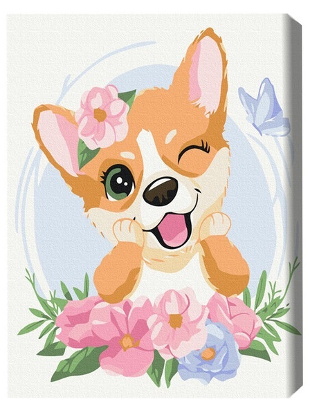 Картина по номерам Brushme Корги в цветочках (KBS7103FC) фото №1 — интернет-магазин Desire.md
