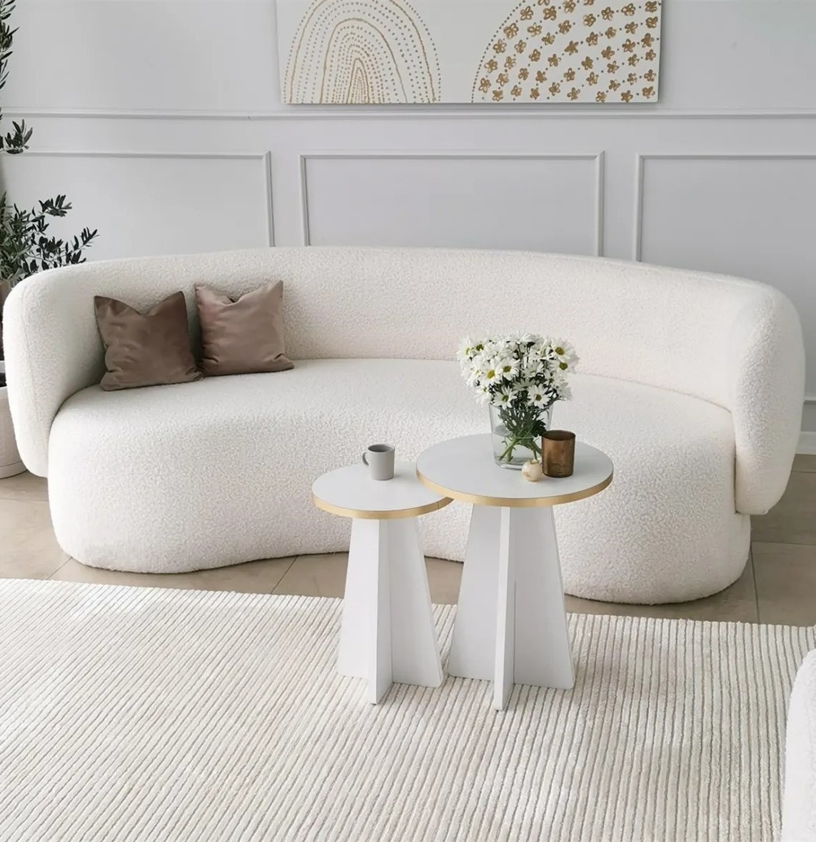 В набор входят две столешницы разных размеров, что позволяет адаптировать их под различные задачи и сценарии использования. Будь то размещение декора или удобное место для чашки кофе — столики обеспечивают достаточно пространства и функциональности.