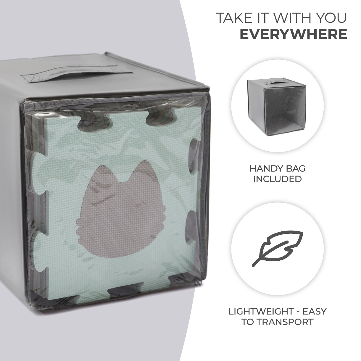 Нейтральные, контрастные цвета головоломки — прекрасный декоративный элемент в комнате. Пазлы сделаны из пены EVA, они безопасны и не содержат вредных веществ. Это подтверждается испытаниями, проведенными независимой лабораторией INTERTEK. Кроме того, их легко содержать в чистоте. В комплект входит сумка для хранения пазлов.