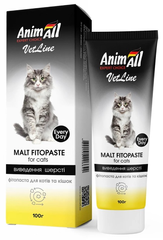 Фитопаста для выведения шерсти AnimAll VetLine Malt Fitopaste является природным средством, которое способствует эффективному выведению шерсти из пищеварительного канала кошки, а также предотвращает образование неприятных комков шерсти в желудке. Ее фармакологические свойства позволяют нормализовать пищеварение и обеспечивать оптимальную перистальтику кишечника.