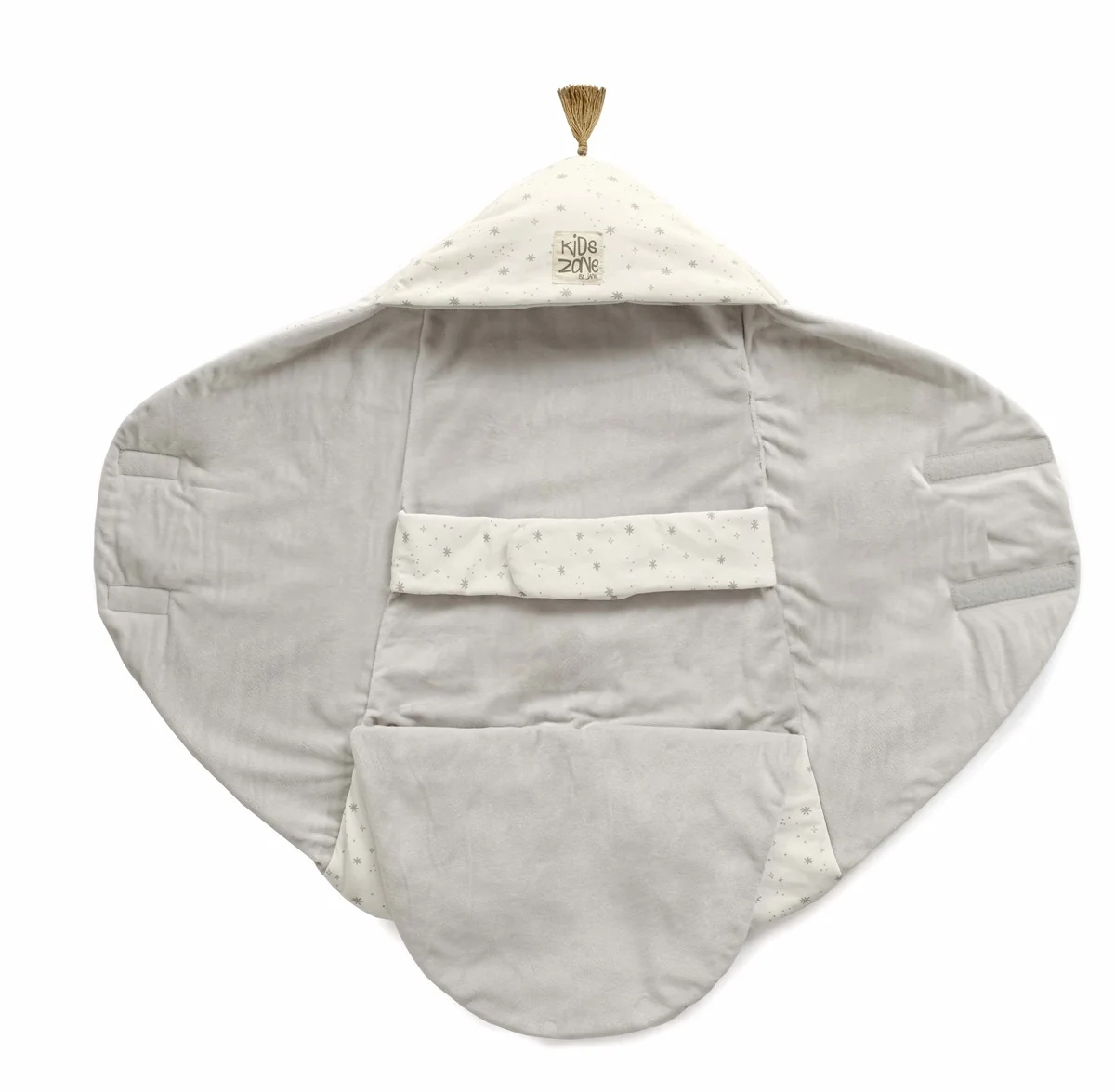 Ребенок будет поддержан и укрыт, но в то же время сможет свободно двигать ногами благодаря форме сумки, которая адаптируется к его телу.