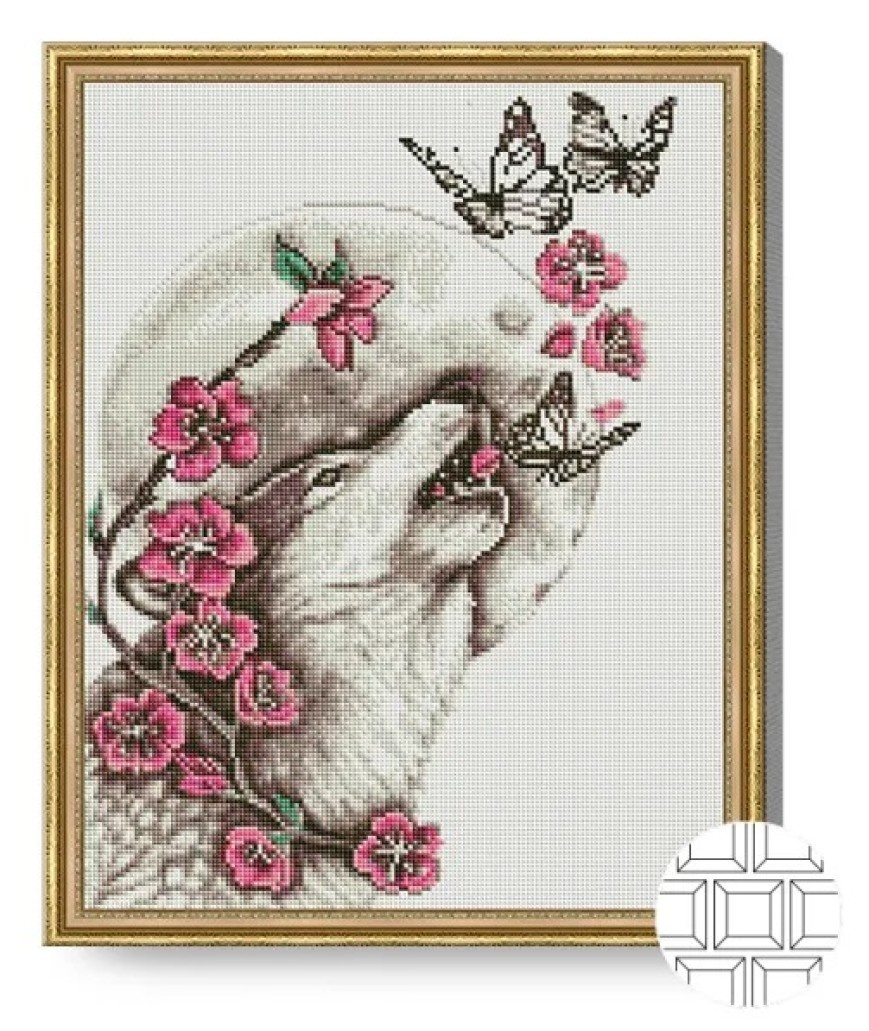 Алмазная картина по номерам Art Gallery Premium Волк и цветы 40x50cm (QB205993)