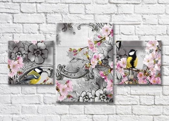 Картина Magic Color Sakura branches and tits on vintage background (3565234)