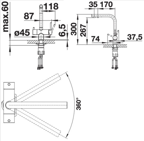 Угол поворота излива360 °