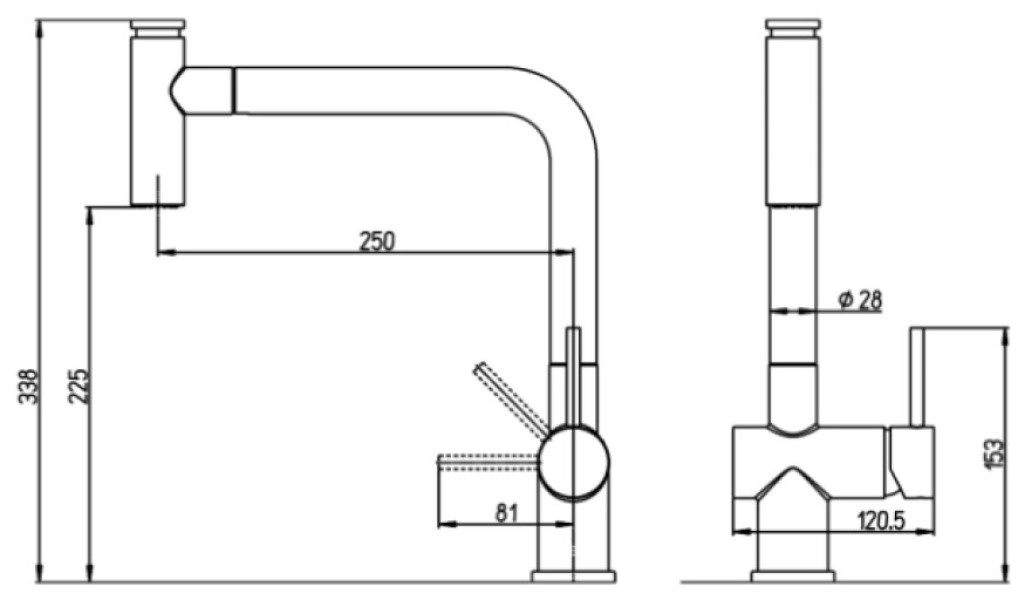 Высота излива225 мм