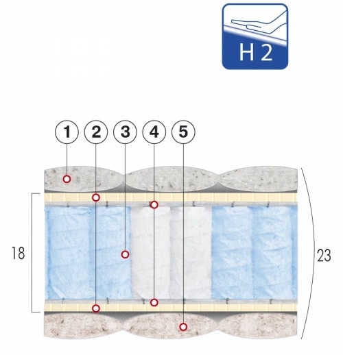 Пятизонный пружинный блок из независимых пружин, обеспечивает необходимую поддержку во время сна.