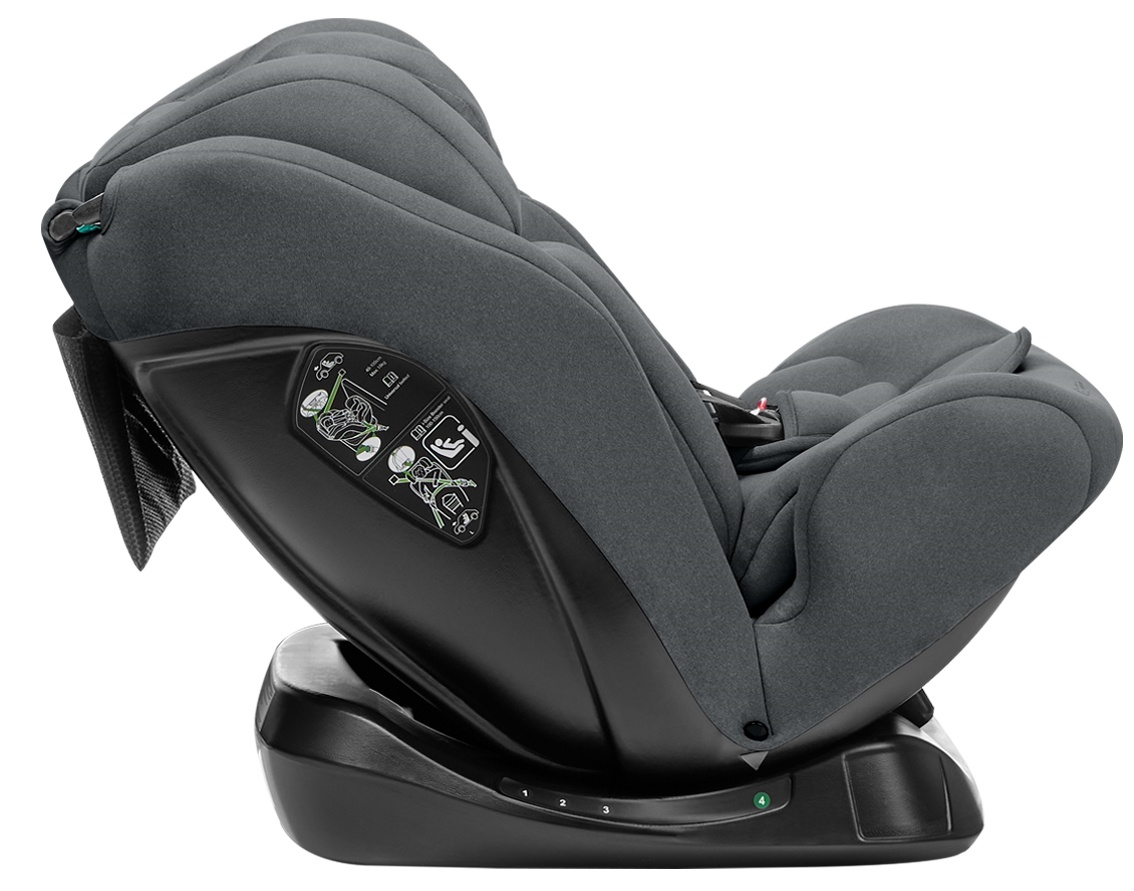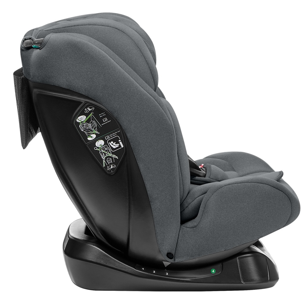 4 положения наклона сиденья как для установки лицом назад, так и для установки лицом вперед. Регулируемая подголовник в 14 положениях. Система пятиточечных ремней безопасности с накладками на плечи и крышками нижней застежки. Регулировка ремня безопасности одной рукой. Мягкая поддержка всего тела. Пена с эффектом памяти на подголовнике.