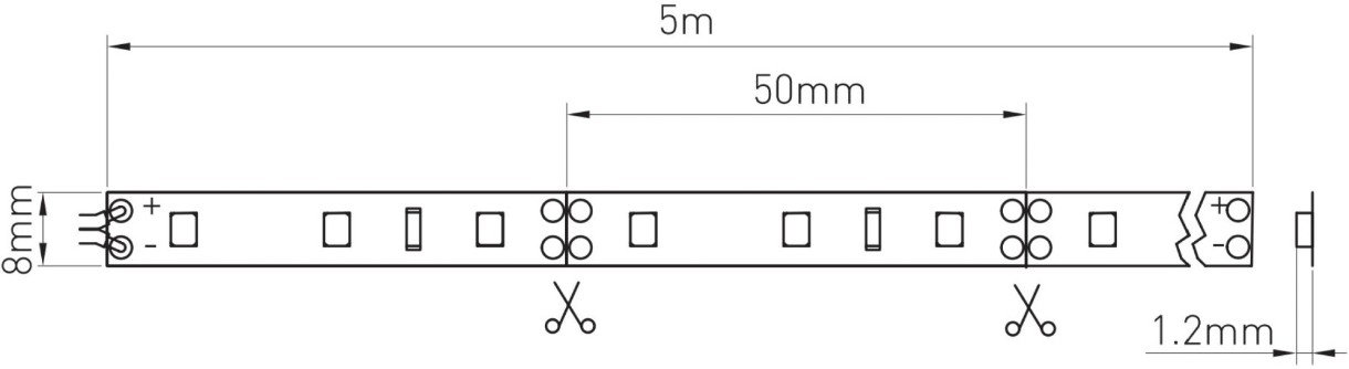 Светодиодная лента режется по специальным нанесенным линиям. При подключении необходимо соблюдать полярность, которая указана на ленте и источнике питания. При подключении к одному каналу источника питания более 5 м светодиодной ленты, рекомендуется каждые последующие 5 м подключать параллельно.