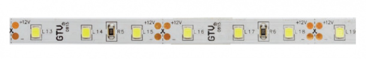 Светодиодная лента GTV 2835, 60 д/м, 6W, 12V, IP20, теплый белый, FLASH, 8 мм, открытая - осветительный прибор в виде гибкой печатной платы, на которой расположены светодиоды. На обратную сторону ленты нанесен клеевой слой.
