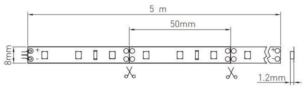 При отсутствии коннекторов (в комплект не входят) соединение отрезков ленты осуществляется посредством пайки.