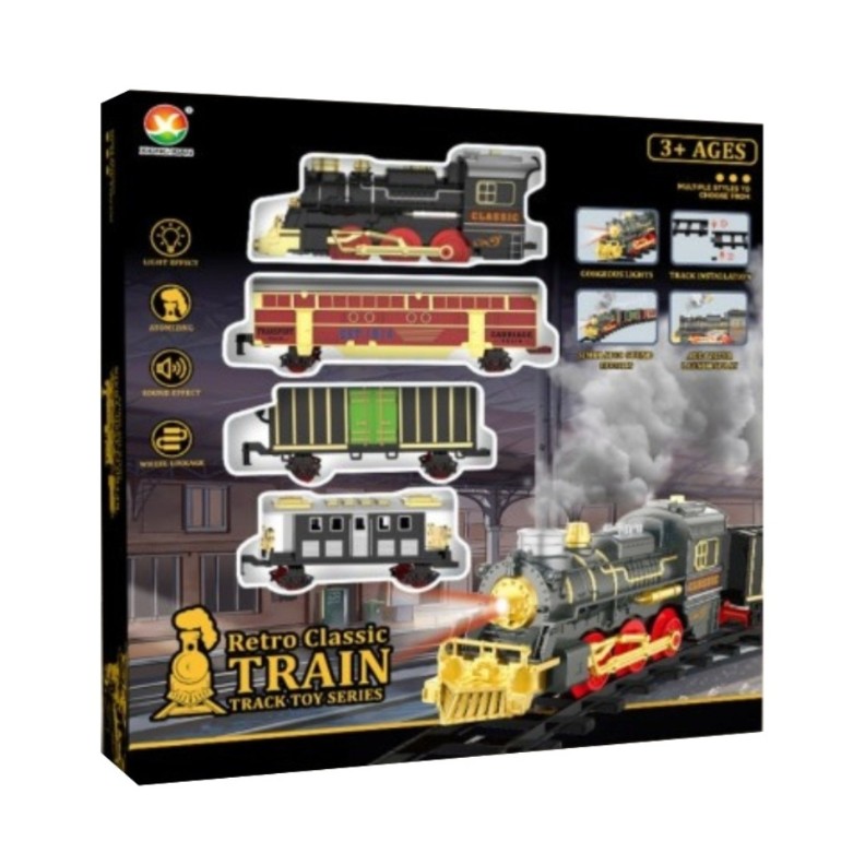 Комплект состоит из тщательно изготовленных и прекрасно отделанных элементов, которые можно расположить по своему усмотрению. Кроме того, поезд испускает дым, световые и звуковые эффекты.