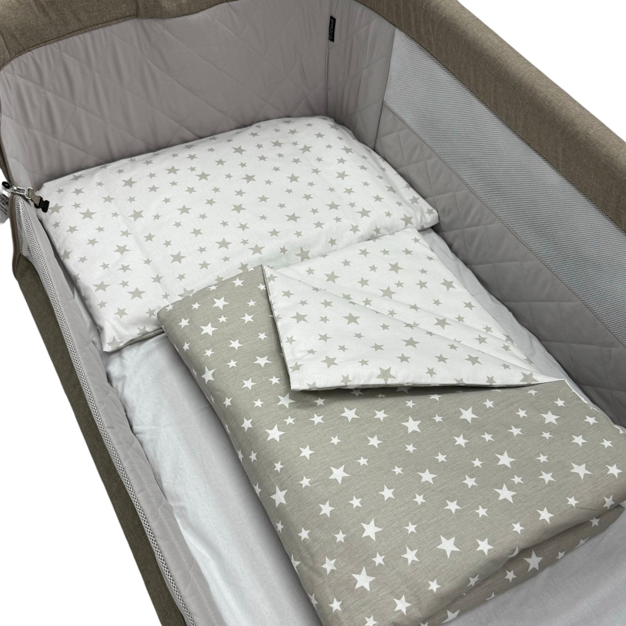 - Простыня с резинкой 90*50 см — идеально подходит для матраса co sleeper, предотвращая скольжение и обеспечивая стабильность.